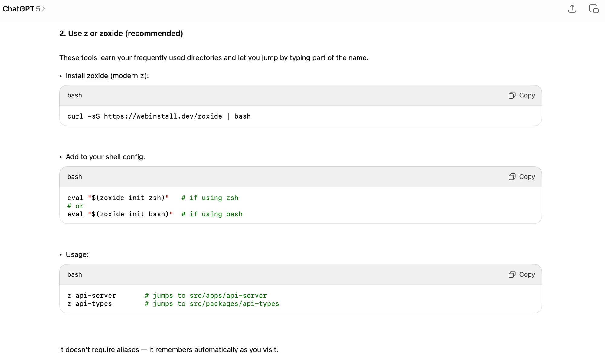 That is when I discovered Zoxide โจ, thanks to ChatGPT, of all places.